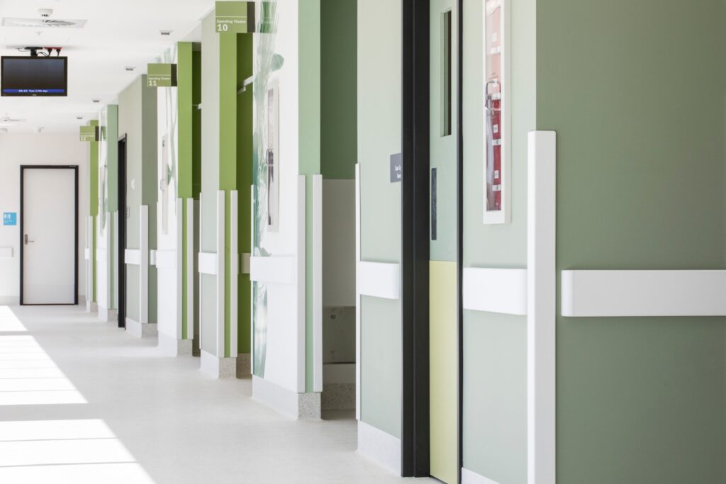 • Verfügbar in teilweiser oder voller Höhe in einer breiten Palette von Acrovyn-Farben