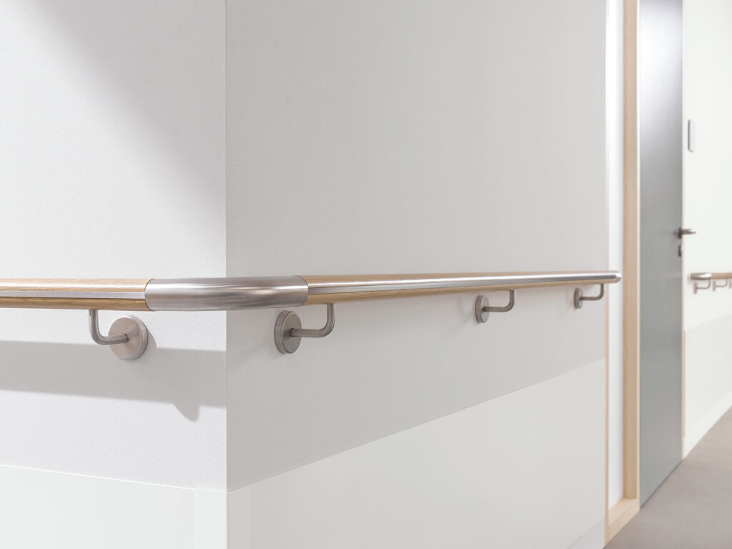 Verschiedene Materialien sowie eine große Auswahl an kombinierbaren Stützen und Endstücken ermöglichen Handläufe, die perfekt auf die individuellen Anforderungen abgestimmt sind. Das Baukastenprinzip ermöglicht funktional als auch gestalterisch vielfältige Optionen.