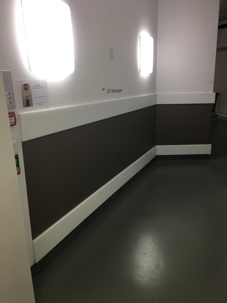 Unser Rammschutz aus hochwertigem Polyethylen schützt Wände, Fliesen, Kanten usw. zuverlässig vor Stößen und Beschädigungen durch schwere Gegenstände wie z.B. Palettenrolli, Paletten, Wagen etc.