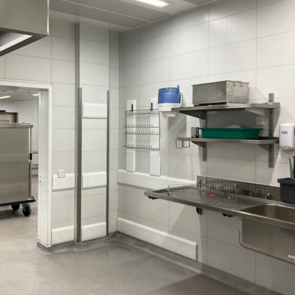 Dieser Rammschutz wird vielfach in Logistikbereichen eingesetzt z.B. in Küchen, Lebensmittelverarbeitungen, Lager, Logistikzentren, Labors, Produktionsbereiche usw.